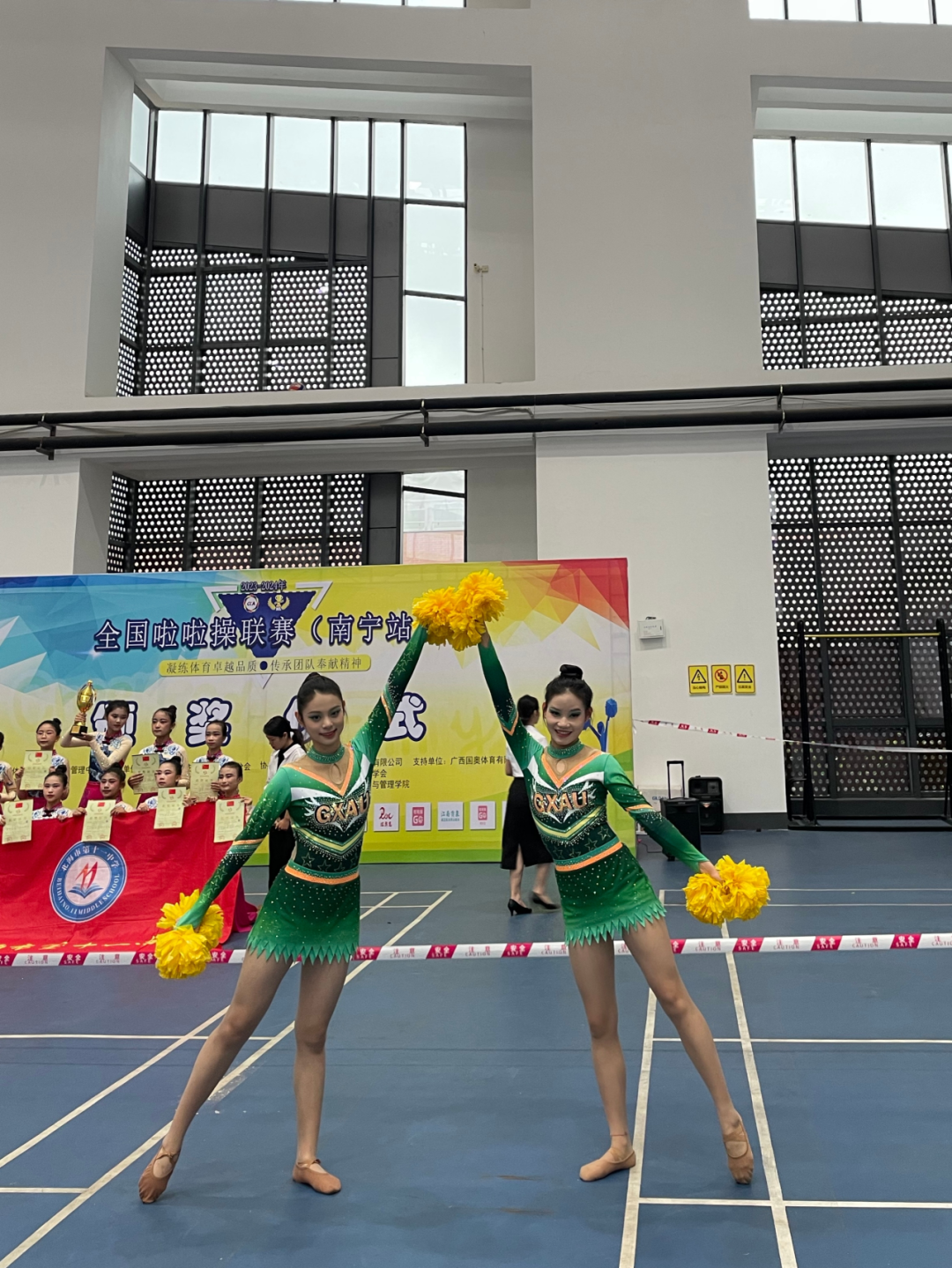 乐天堂f88啦啦队有25名运动员参加了5个项目的比赛,他们在赛场上团结协作稳定发挥,充分体现了顽强拼搏的体育精神,展示了广艺青年学子积极向上的精神风貌,分别获得了公开青年乙组双人花球第一名、公开青年乙组双人爵士第一名、公开青年乙组爵士规定动作3级第一名、公开青年乙组花球规定动作0级第一名。