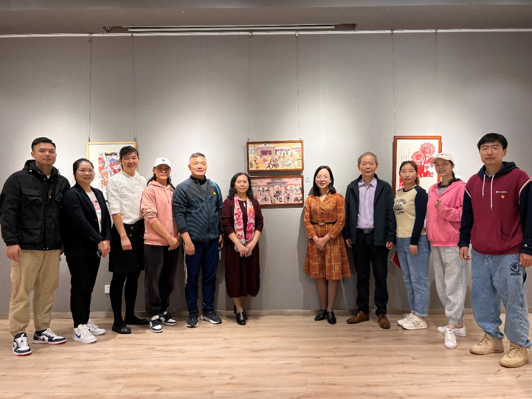韦春灵与老师们观看展览